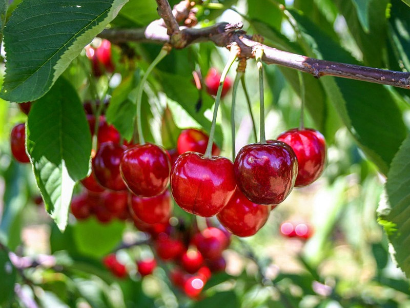 烟台大樱桃布鲁克斯果实扁圆形,果型大,平均单果重9.4 g,大单果重13.0 g。果皮浓红,底色淡黄,油亮光泽。果顶平,稍凹陷。果柄短粗,平均长3.1 cm,类似红灯,属短柄品种。果肉紫红,肉厚核小,可食率96.10%。肉质脆硬,总硬度(含皮)199.7 g/mm2,为红灯的2.3倍。汁液丰富,风味极甜,含糖量17.00%,平均比红灯高60%;含酸量0.97%,平均比红灯低28%;糖酸比17.5,为红灯的2.2倍。耐贮运,在0~5℃下可贮藏30天以上风味不变 。